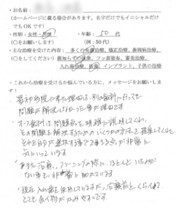 ・最初当院に来た理由は、別の歯科に行っても問題が解決しなかった事が理由です。