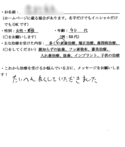 オーク歯科グループに寄せられた患者様の声