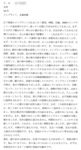 先生は、現在の歯の状態を説明してくださり、インプラントに関する費用、時間、効果、安全性、私の仕事の日程も考慮に入れて、インプラント施術の工程を組み立てて、他の歯の治療も進めて下さいました。インプラントと並行して、他の歯の治療もして頂きましたが、ともすれば、これくらいの違和感はしかたないのかな~と思うような噛み合わせ・高さの調整でも、薄紙1枚の差も見逃さず、びっくりするほどぴったりに調整してくれます。